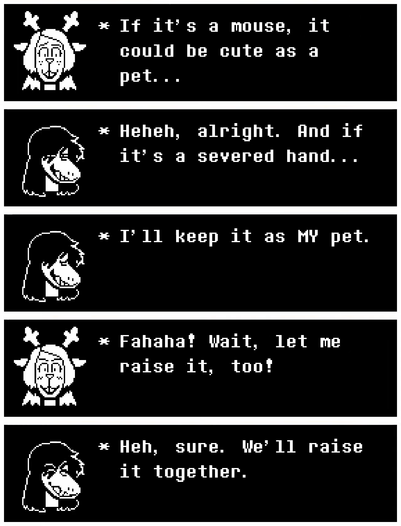 Ever since the release of Chapter 4, many theorists have dissected the association between the soul and the angel ornament as suggesting that the player is or at least plays a similar role to the angel of the prophecy, being essential to either reinforcing or changing fate, depending on one’s interpretation, as it plays out within the game’s story. With this understanding of the soul in mind, it becomes ironic that the being who is responsible for propelling the story forward is reduced to crawling on the floor to get Susie and Noelle’s attention only to have them mistake you for a critter and nearly attempt to swat you to death.