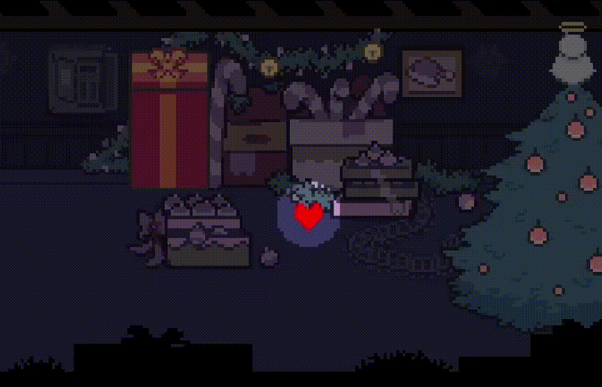 With the vent in the kitchen locked tightly, the player is left to explore the Holiday house by continuing to guide their small floating heart through claustrophobic vents as eerie music still reverberates in the background, eventually finding themself locked in the house’s cluttered basement. After interacting with the circuit breaker and shutting off the house’s power, Susie and Noelle will rush downstairs to investigate your disruption, causing a Christmas tree to fall over as an angel ornament lands on top of the soul and pins it onto the ground.